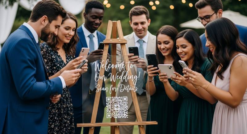 WedUploader aiuta le coppie ad aggiungere codici QR ai cartelli nuziali per condividere istantaneamente le foto degli ospiti senza app o account. Inizia subito il tuo album gratuito!